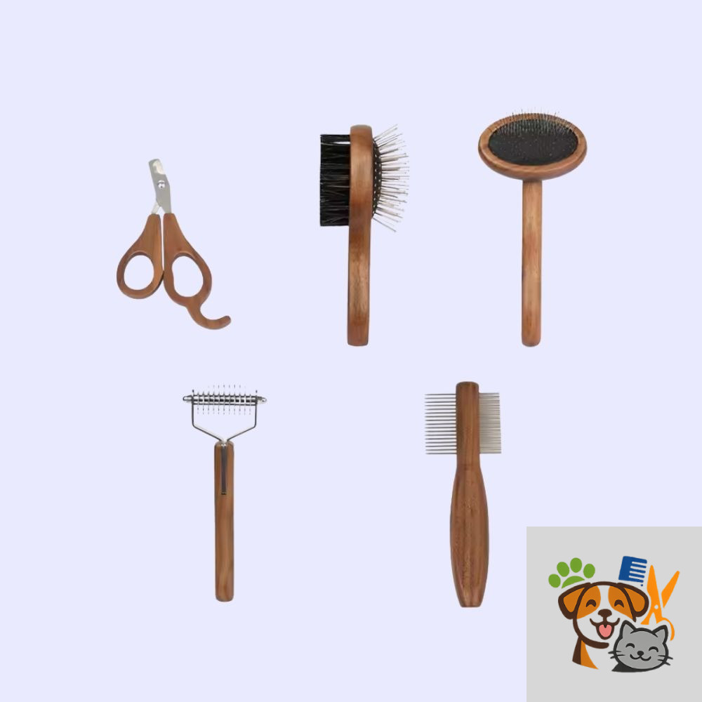 Care for your pet’s coat with this 6-piece wooden handle grooming set designed for brushing, detangling, trimming, and everyday coat maintenance. With tools for knot removal, undercoat care, general brushing, and nail trimming, this set supports a smoother grooming routine for cats and dogs. The natural wooden handles add a comfortable grip and classic look, making this kit a practical and stylish choice for regular home grooming.